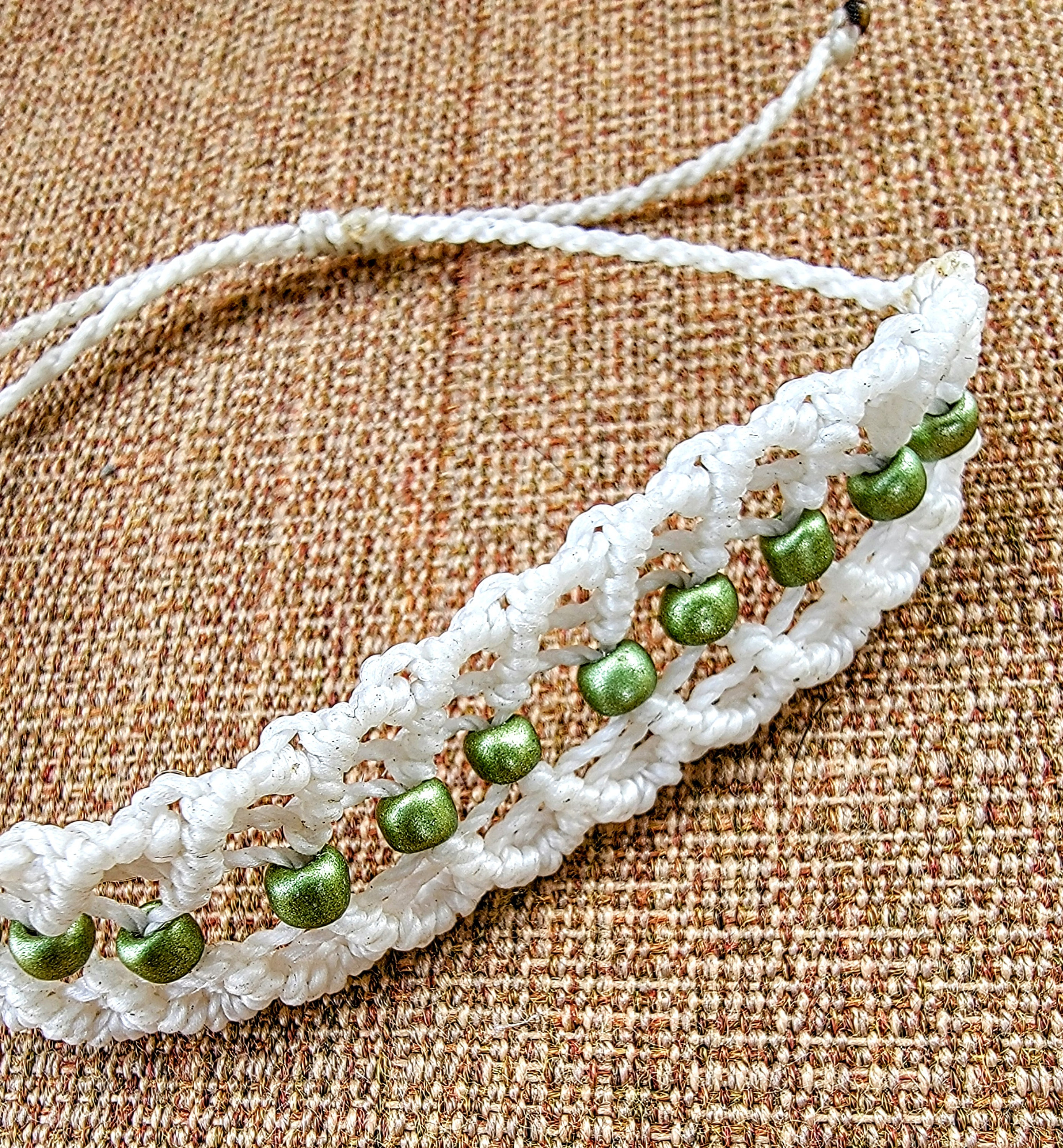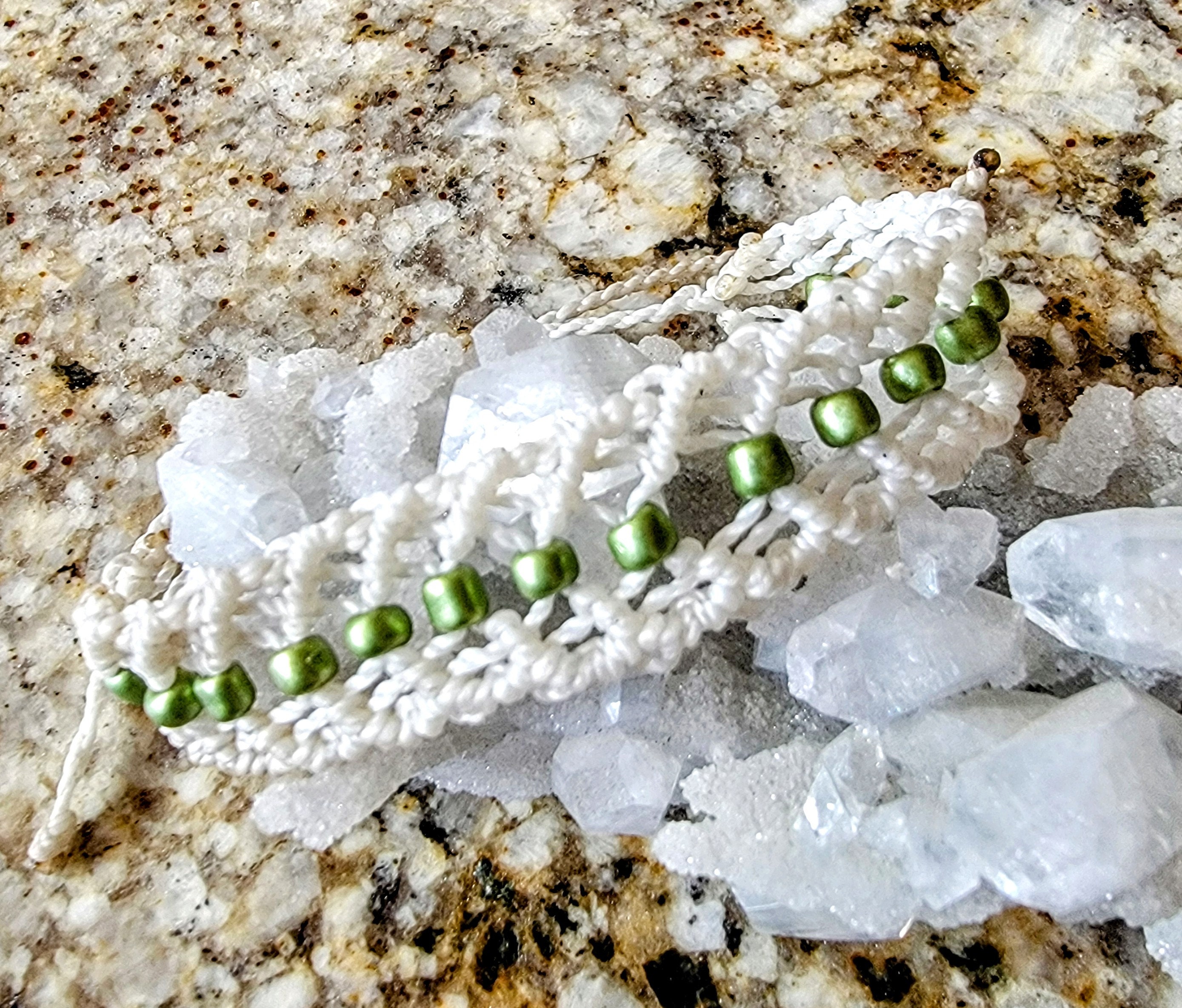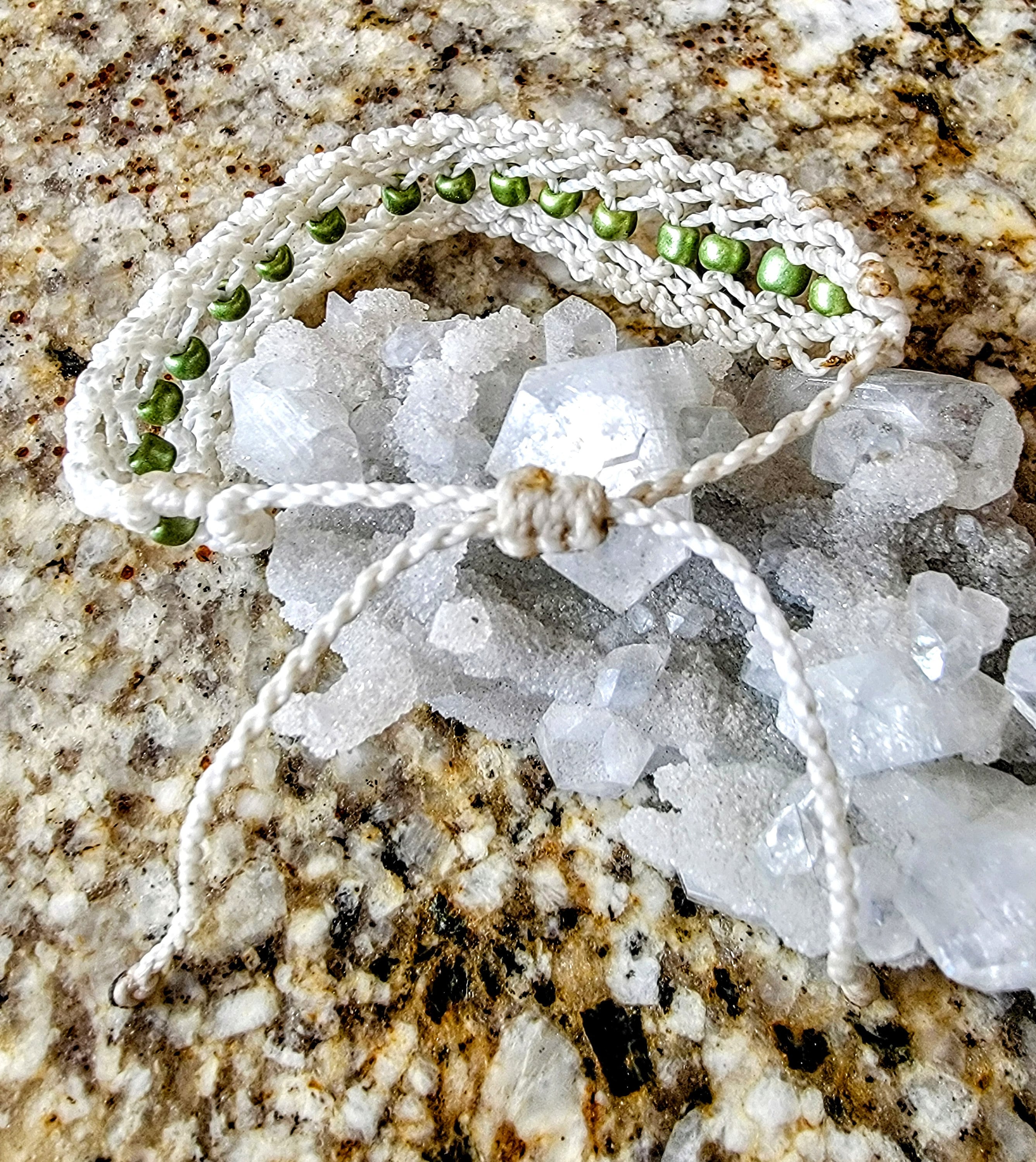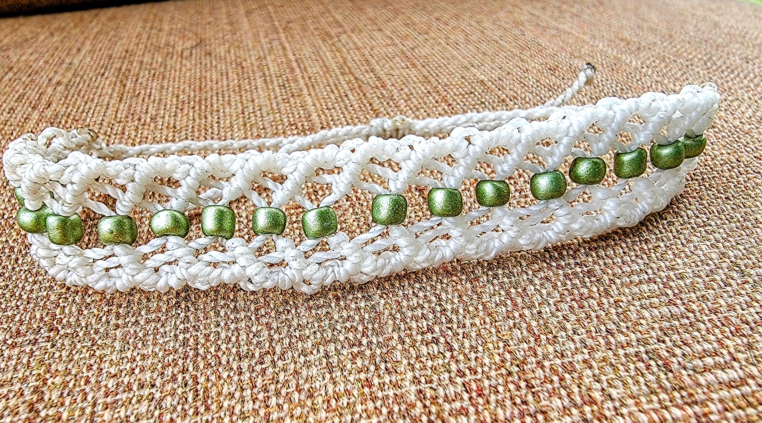Gorgeous and lovingly knotted bracelets adorned with czech beads. Waterproof, waxed thread is remarkably tough yet soft and comes in an array of bold colors.