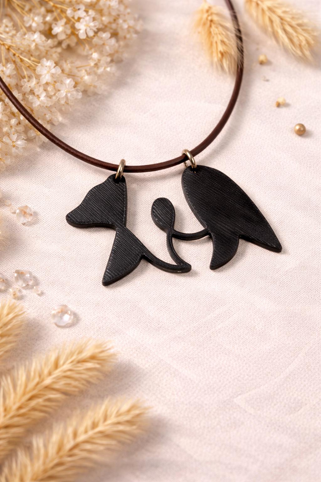 Necklace is an 18" brown leather cord.